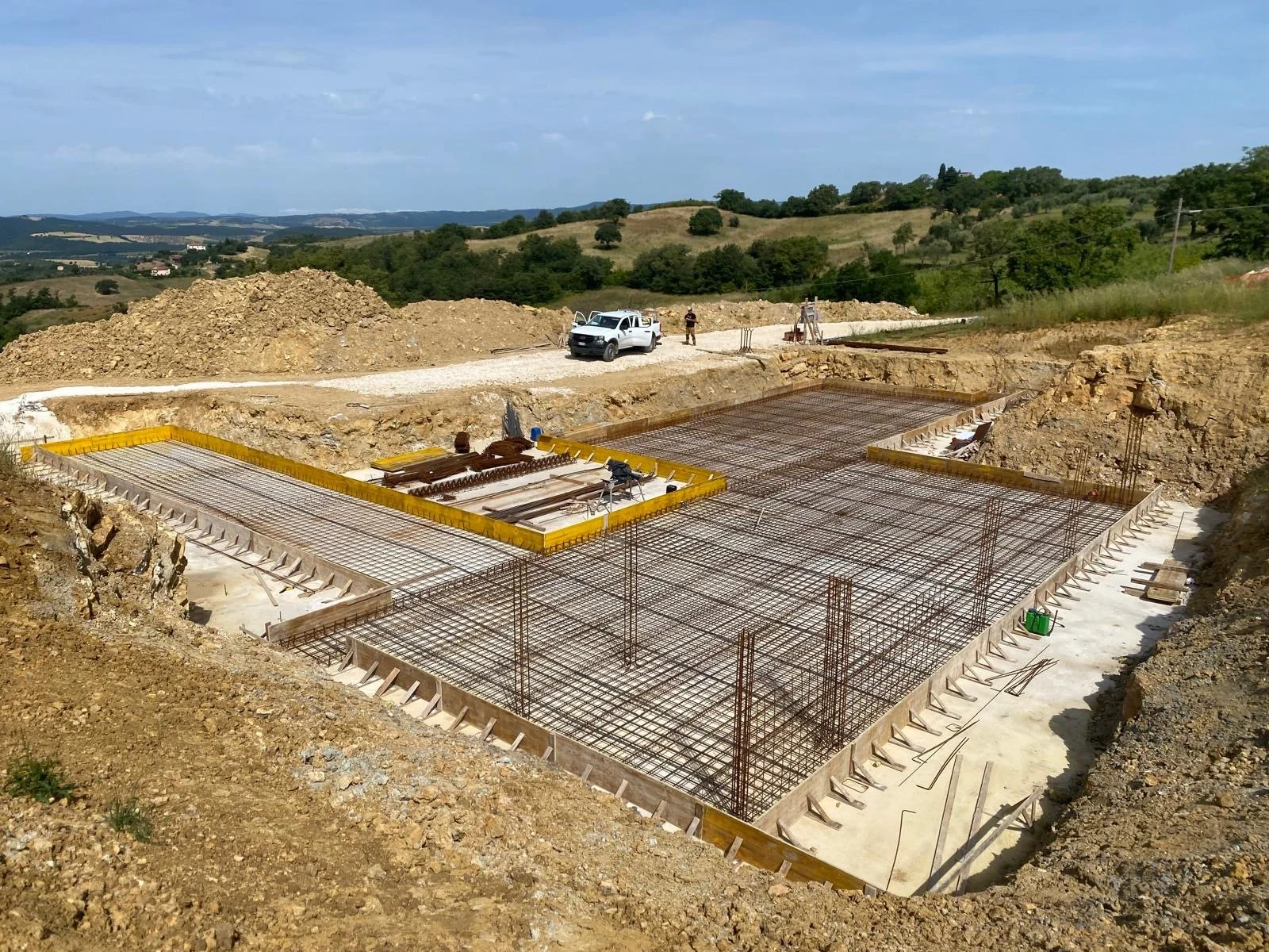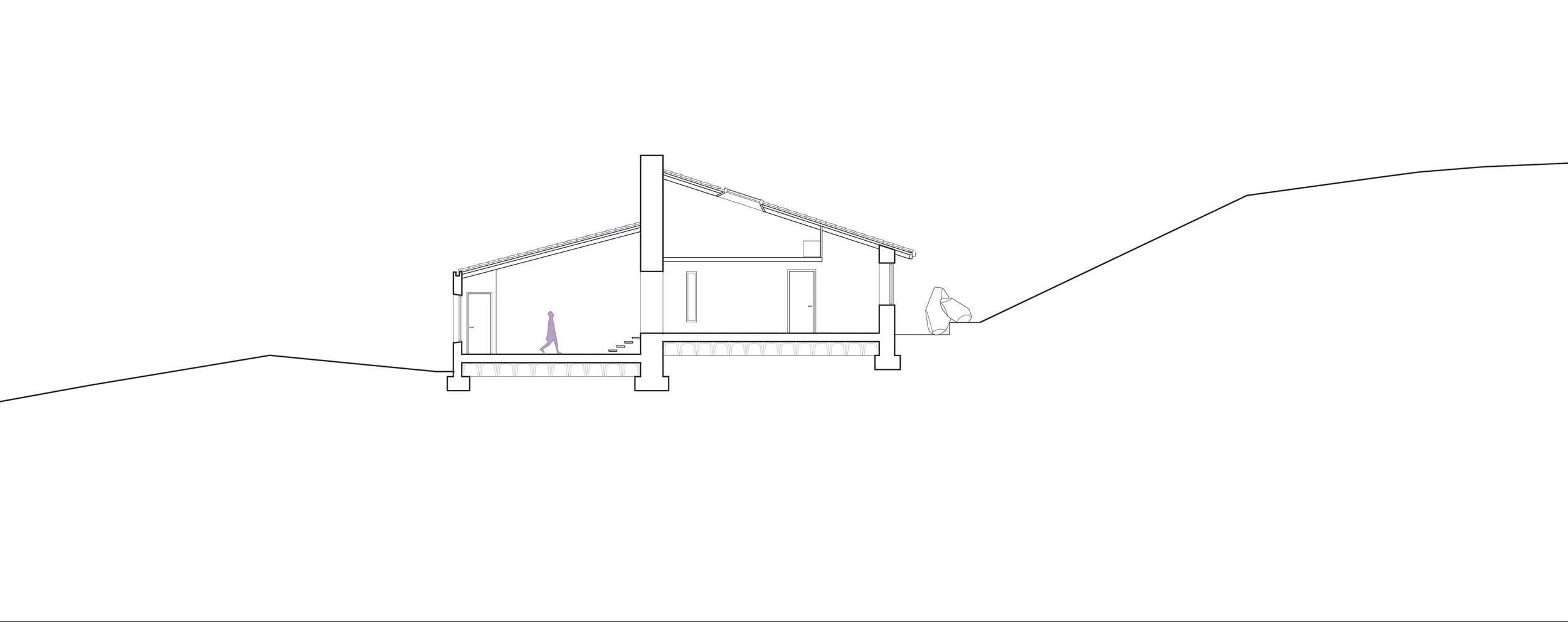 The farmhouse rises in the Italian countryside, on a slope nestled between a medievalborgoand the sea.Set outside the urban context, along the irregular incline of a hill in the Tuscan rural landscape, it establishes a direct relationship with the morphology of the terrain and the surrounding agricultural horizon. The intervention originates from a primary act of excavation and shaping of the land, in which the ground is cut and molded even before the architecture takes form.