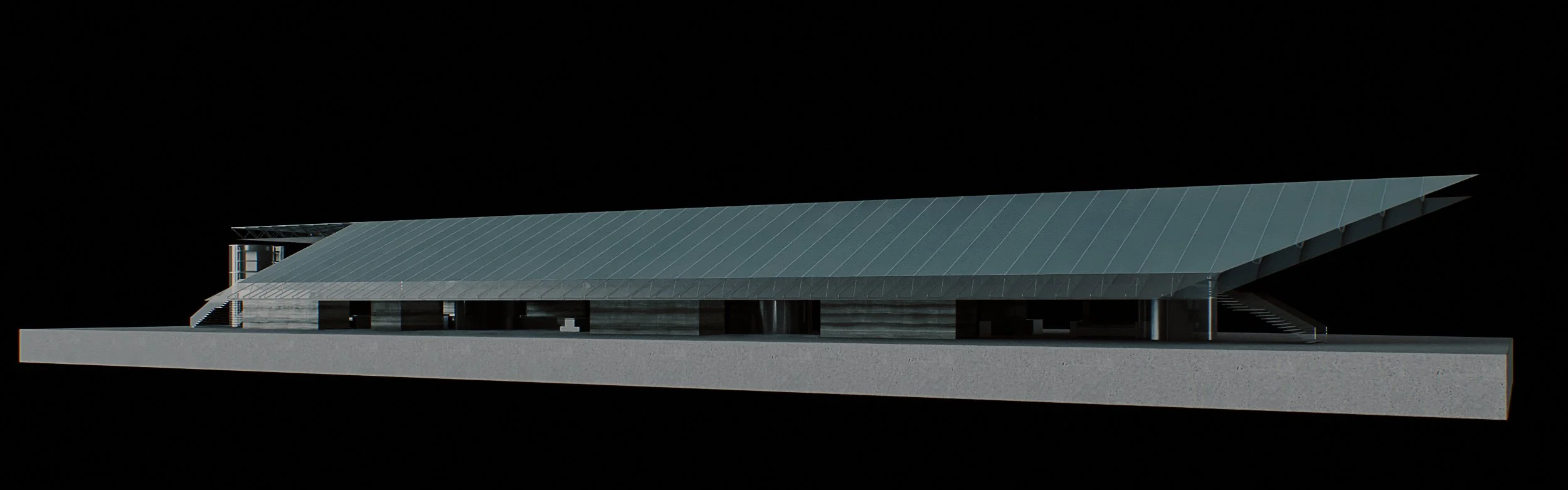 The steel canopy structure is supported by the RC piers, that are following a grid of appr. 30x30m. The roof canopy structure is utilizing a space frame structure which was selected following an iterative process of aiming to integrate both structural efficiency and aesthetics.