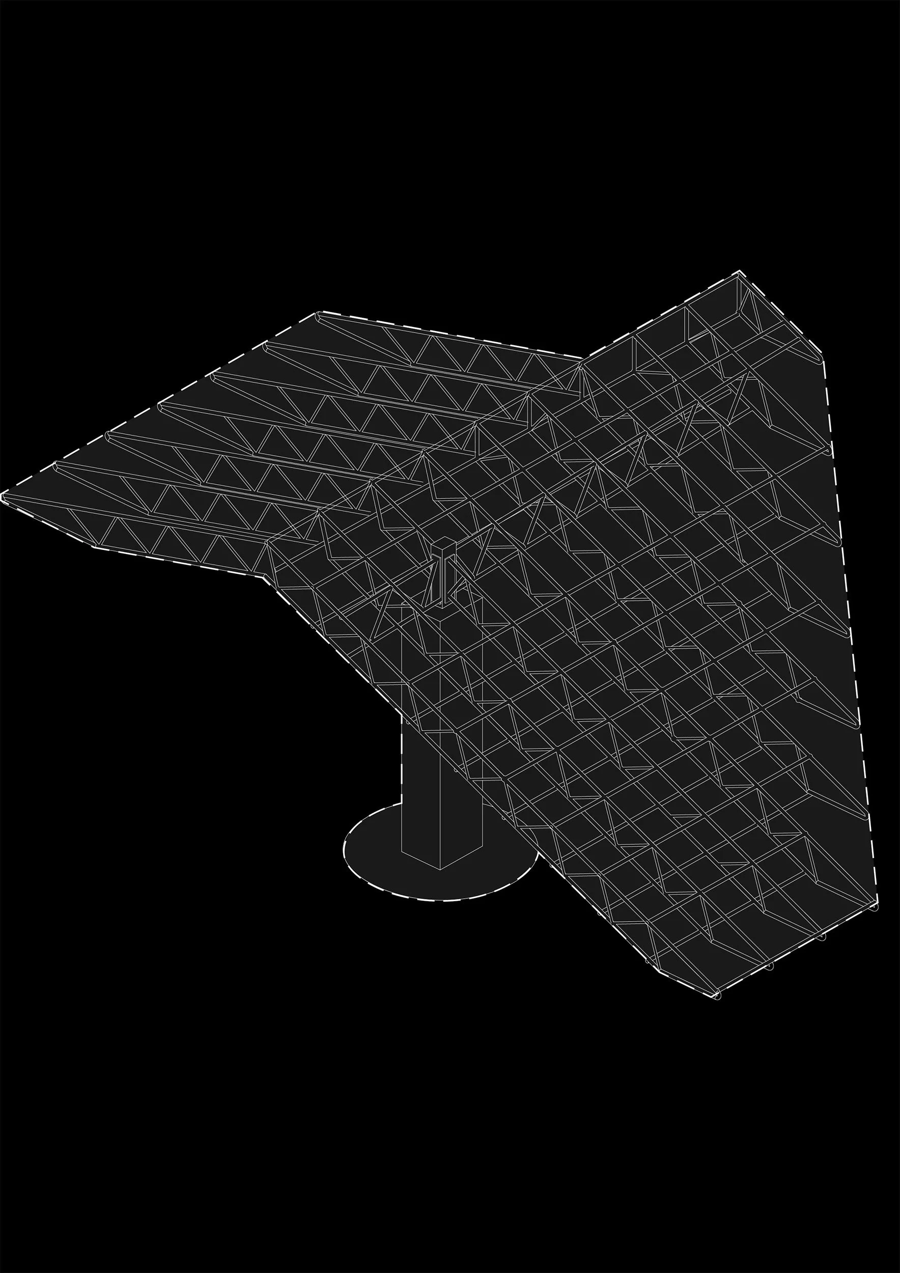 The space frame was deemed the optimal solution for this application due to the long spans required to achieve the open plan on the ground floor. The geometry of the roof structure is optimised for forces, for efficiency, by adapting a tapering geometry where the space frame trusses are deeper in the centre, where bending moments are higher and reducing towards the perimeter where bending moment is minimum.